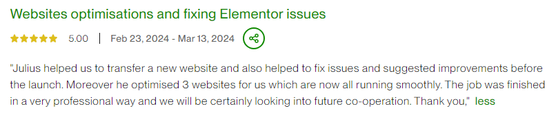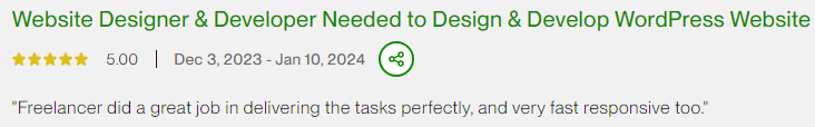 I’m a Top-Rated Upwork freelancer with 3 years of experience. Maintaining this status is challenging, but my dedication ensures top-quality results for my clients.
